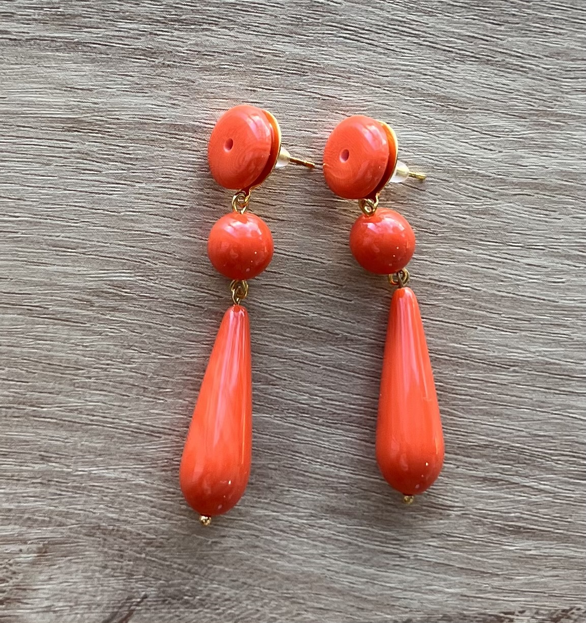 Un diseño monocromático en coral vibrante que ilumina el rostro al instante y estiliza gracias a su lágrima alargada.
