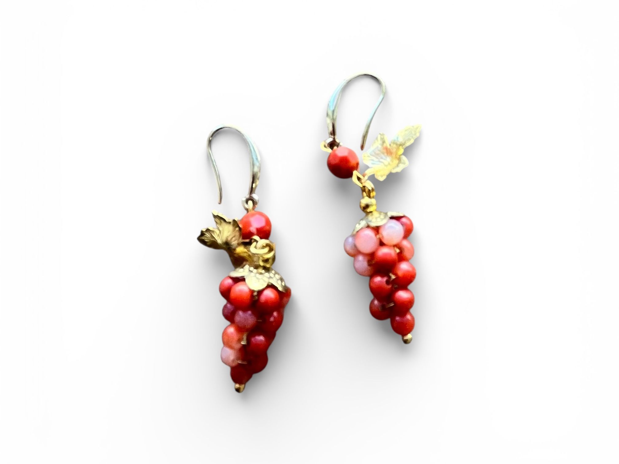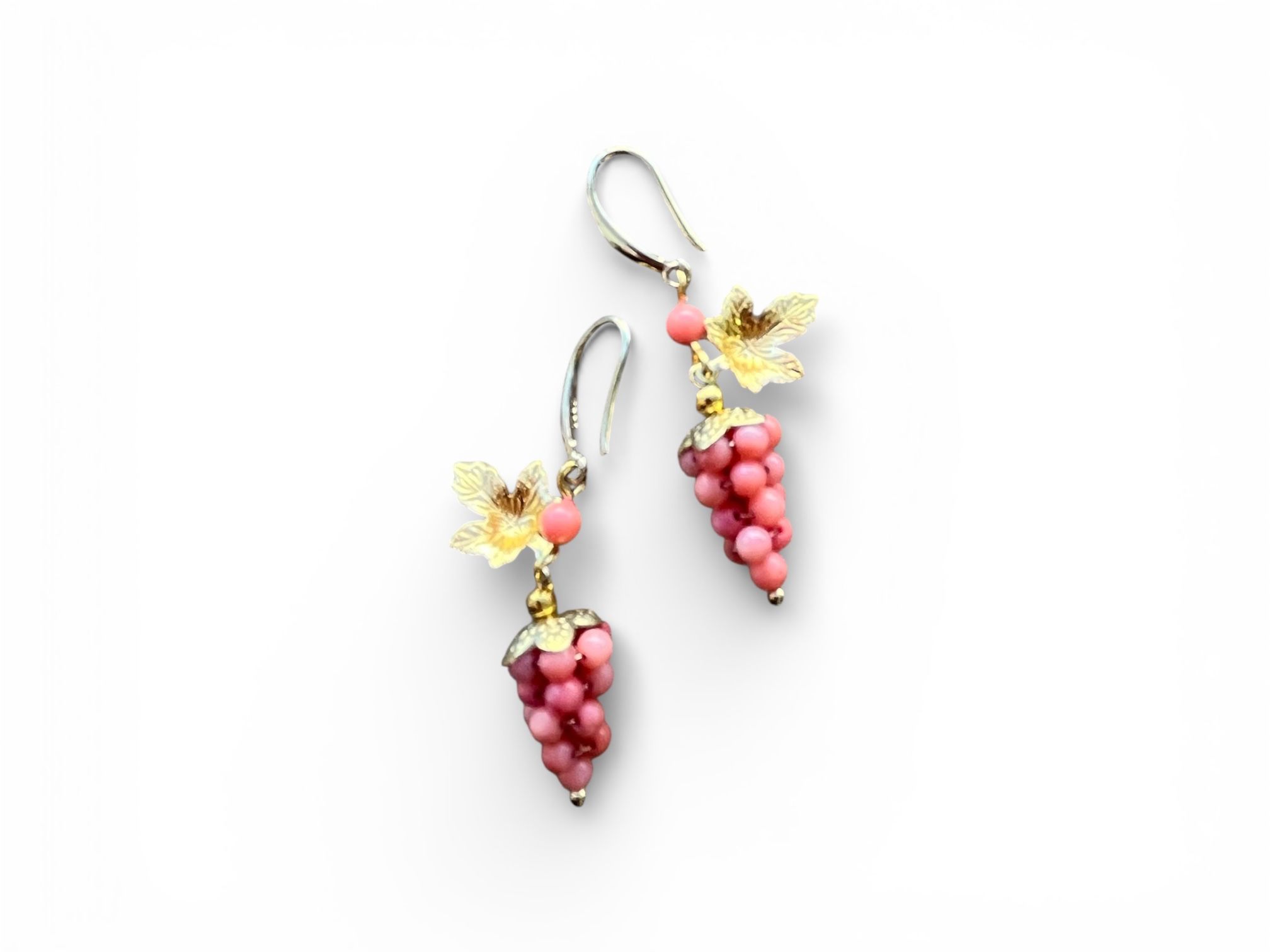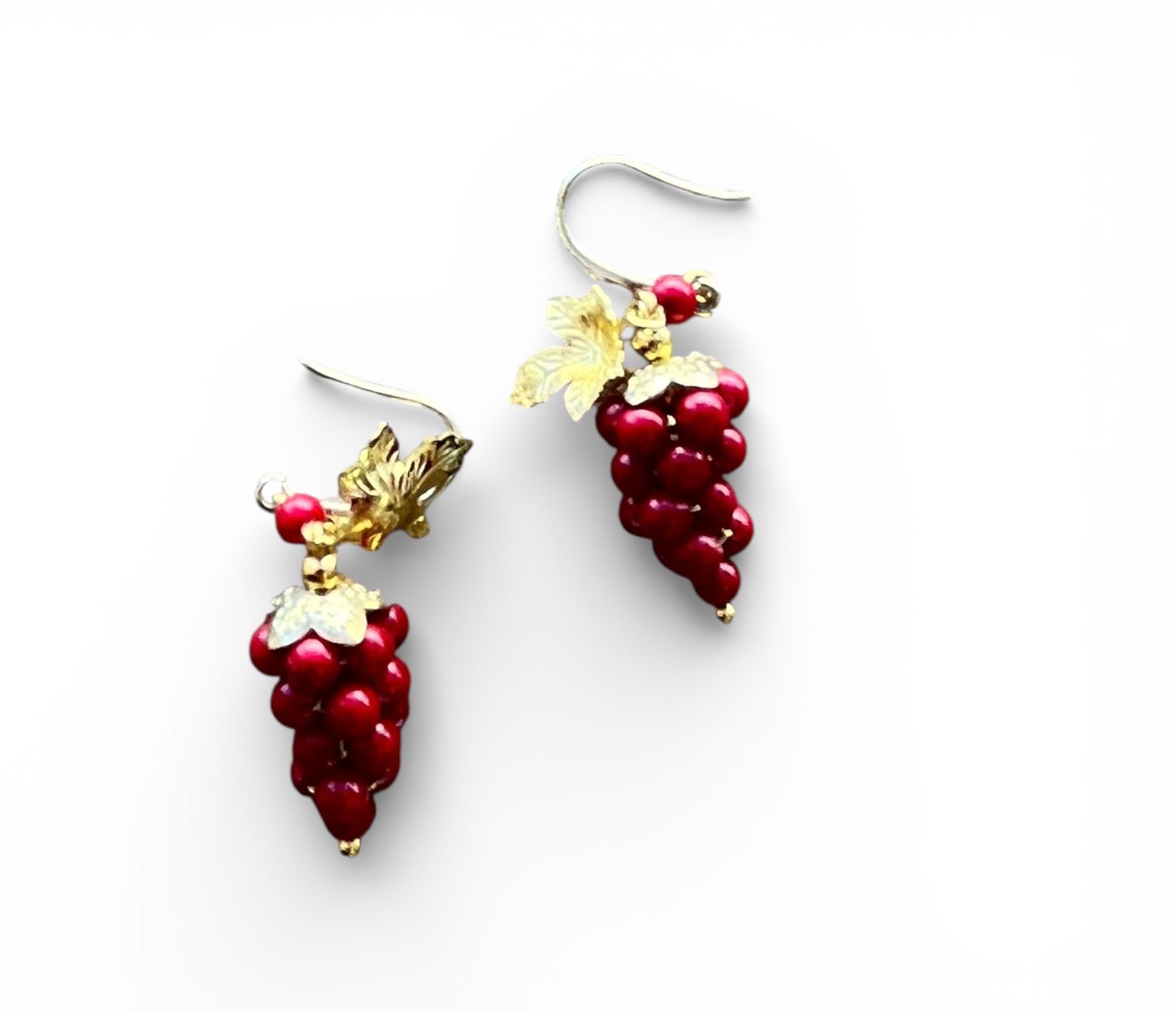 Cada pendiente está formado por pequeñas cuentas que imitan la caída natural de la uva, coronadas por hojas de parra en tono dorado envejecido que aportan un toque de luz espectacular.