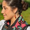 ¿Son cómodos para la Feria? Sí, su diseño ligero los hace perfectos para llevar desde el mediodía hasta el amanecer sin molestias. Su longitud de 6 a 8 cm (incluyendo el gancho) y su anchura de 2 a 2.5 cm son ideales para rostros ovalados y alargados, aunque se adaptan maravillosamente a cualquier forma. Su sistema de anzuelo permite un movimiento natural y elegante con cada giro.