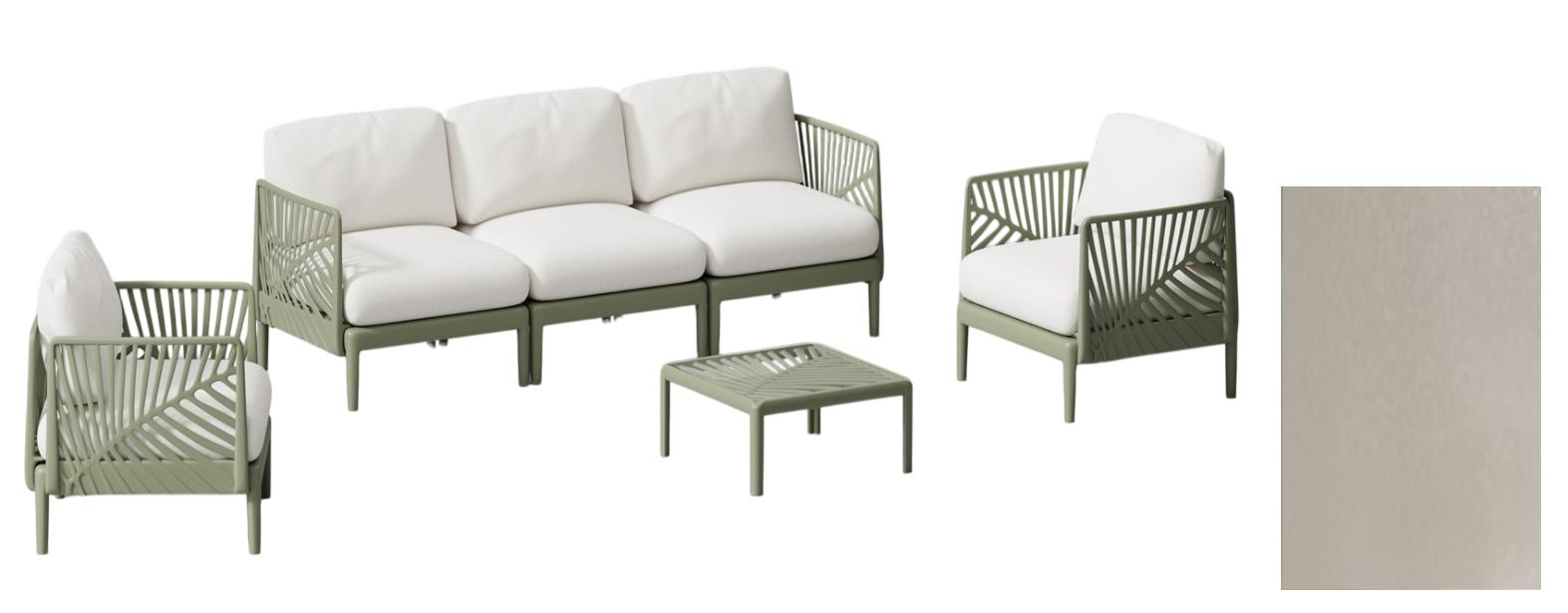 Sofá Set 4 Poliéster Hoja Crema