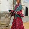 Total Look Flamenca Cayetana Rojo con Lunar Aguamarina – Vestido + Mantón Sevilla Bordado + Complementos Artesanales