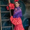 • 👗 Vestido de flamenca modelo Cayetana rojo con lunar aguamarina