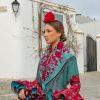 • 🧣 Mantón Sevilla aguamarina bordado en rojo