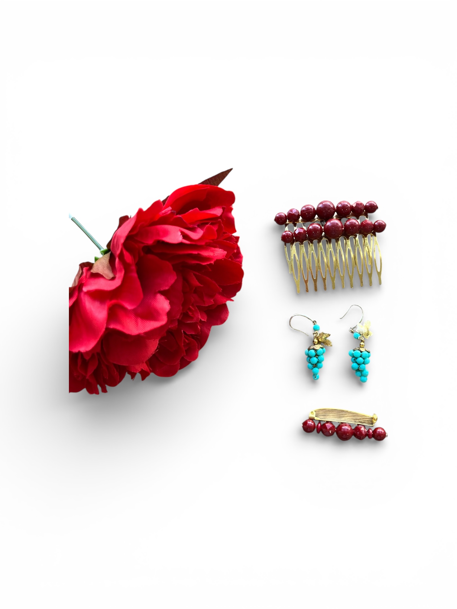 • ✨ Peinas de cuentas rojas